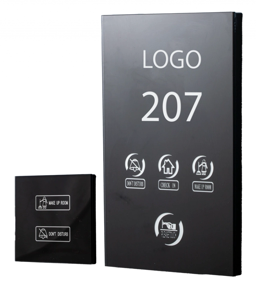 Touch Panel Otel Doorbell sistemi oda içi ve oda dışı olmak üzere iki parçadan oluşur ve sisteme zil bağlanır. DND tuşuna basıldığında ünitede rahatsız etmeyiniz ışığı yanar ve zil aktif halden pasif hale geçer. Temizlik tuşuna basıldığında ünitede temizlik ışığı yanar. Kolay kullanım ve istikrarlı DND/MUR özelliği sayesinde otelinize konfor ve kalite katar. Günümüz teknolojisinde oda numarası ve otel logosu eklenebilen standart çerçeveli veya daha rahat görülebilen büyük çerçeveler ile daha yenilikçi daha şık, eklenip çıkartılabilen özellikleri ile daha flexible ve % 100 cam olması ile otel standartlarınıza daha uyumlu (gazete, kuru temizleme, ütü hizmeti isteme, vs.) özelliklere sahip.